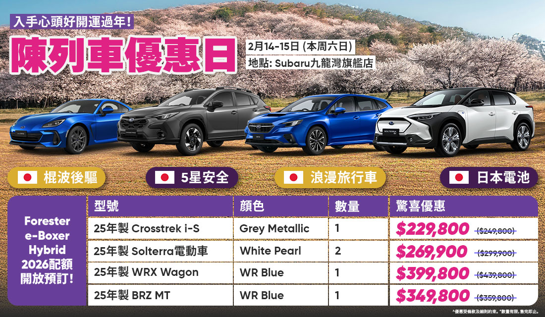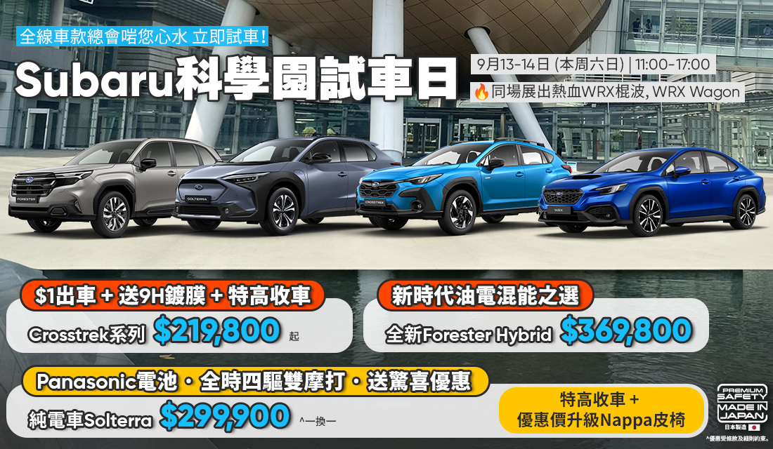 歡迎親臨陳列室,了解SUBARU車款的獨特之處。