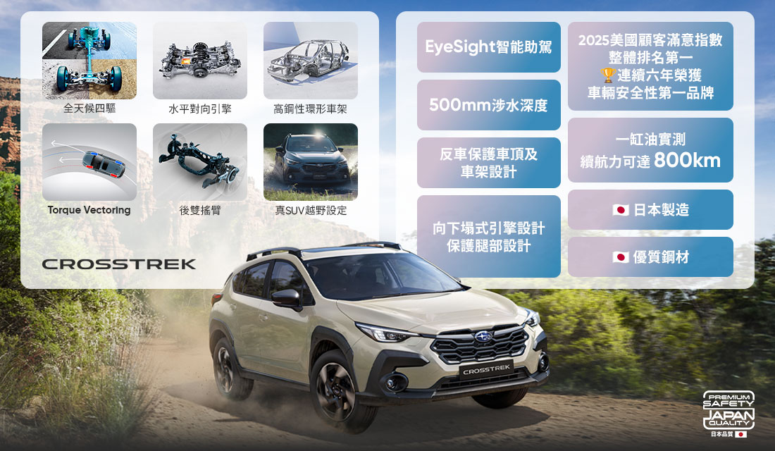 迎春至抵優惠,入手心頭好獎勵自己,陳列車包括人氣SUV Crosstrek豪華版、新世代混能Forester e-Boxer Hybrid、BRZ手波及男仕浪漫旅行車WRX Wagon。全系列由日本製造,榮獲多個國際安全5星獎項,頂級品質與超卓安全兼備,保護家人安心!#試過您就知正 !