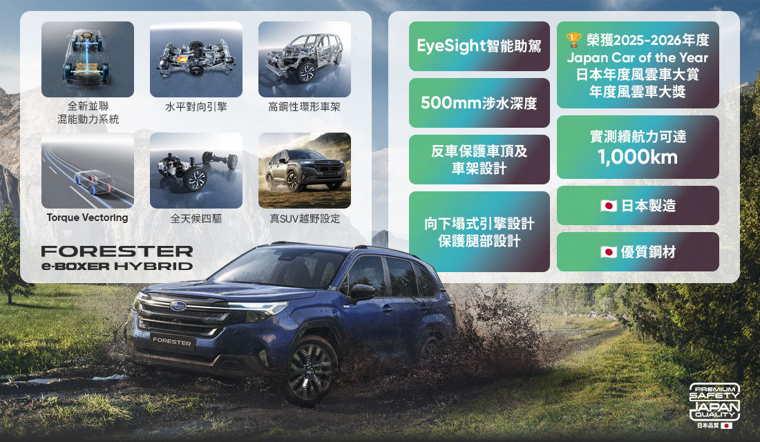 按此瀏覽 全新 Forester e-Boxer Hybrid 資訊。