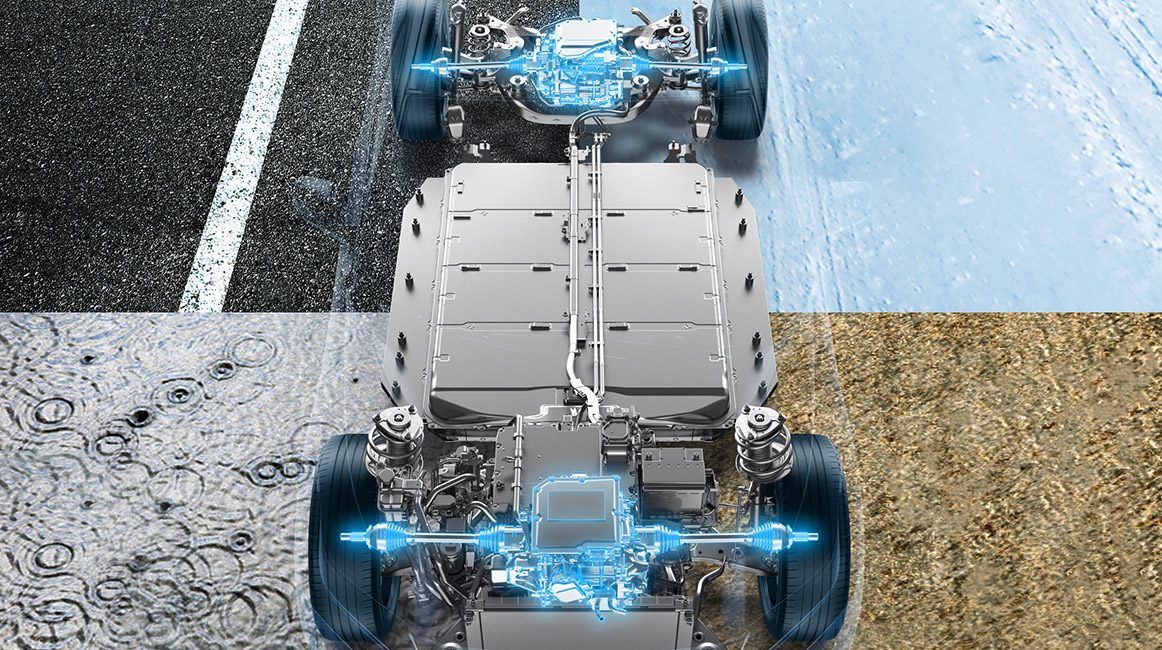 SUBARU’s AWD expertise is now in an EV, with eAxle motors at the front and rear enabling precise power distribution and brake vectoring to optimise grip for every wheel. The driver can now better grasp the ever-changing road and vehicle conditions, making it easier to maintain control. This provides greater peace of mind than ever before.