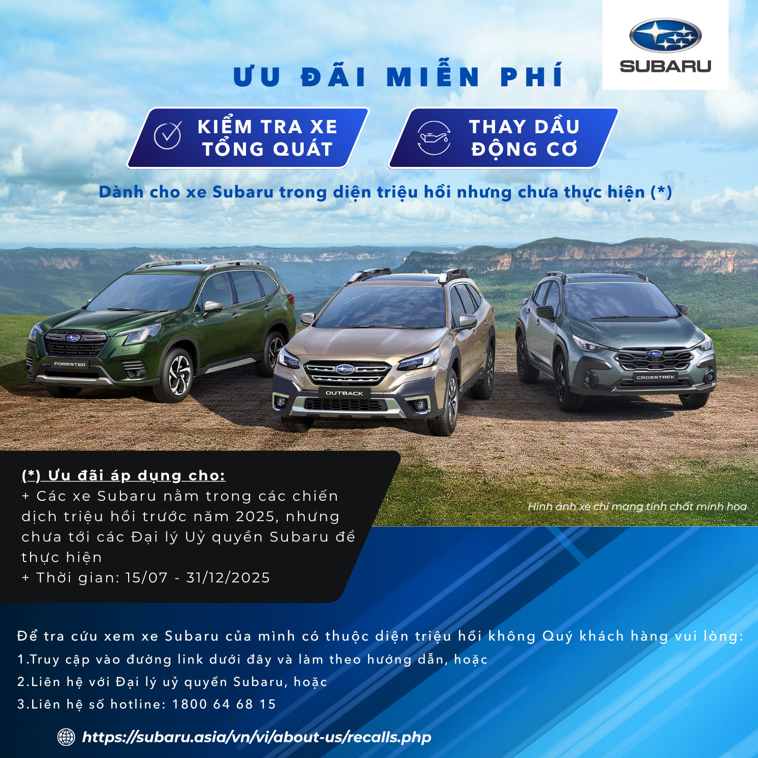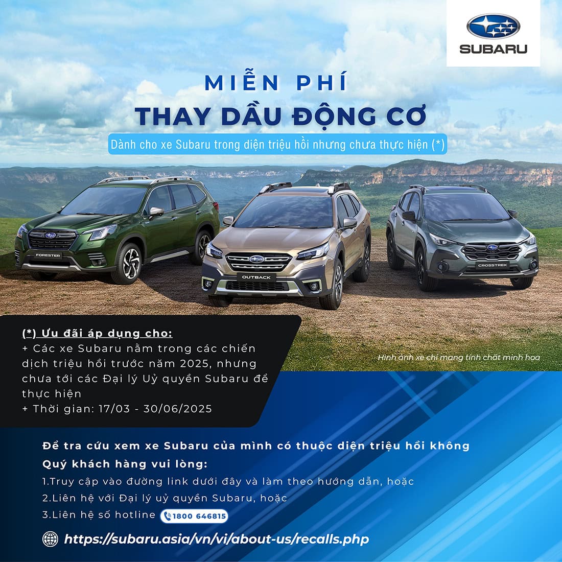 (*)Dành cho xe Subaru nằm trong diện triệu hồi nhưng chưa đến thực hiện chương trình